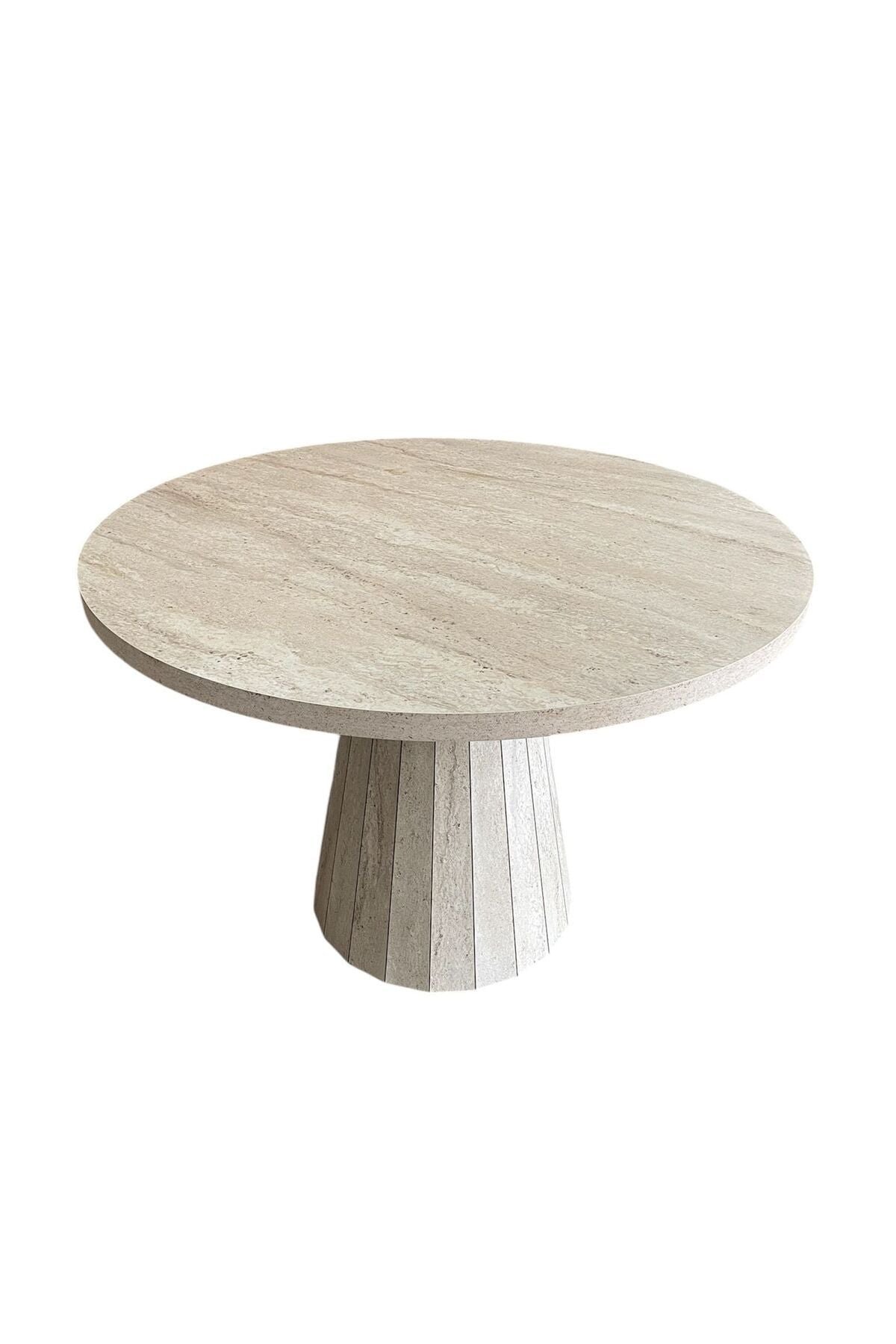 Lucca Piramit Yuvarlak Traverten Masa, 100×100